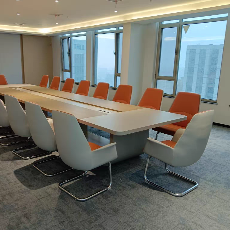 Next, let’s introduce the selected items.First, the meeting table. Grey is a calming yet striking colour that fits perfectly in a meeting and business environment. Its tranquil tone eases tension, providing participants with a space where they can relax and focus on communication and discussion. The table is spacious enough to facilitate meetings and group work, helping to generate new ideas and facilitate decision-making.