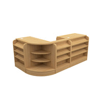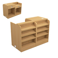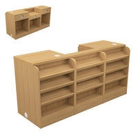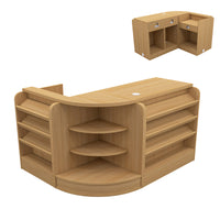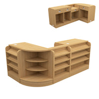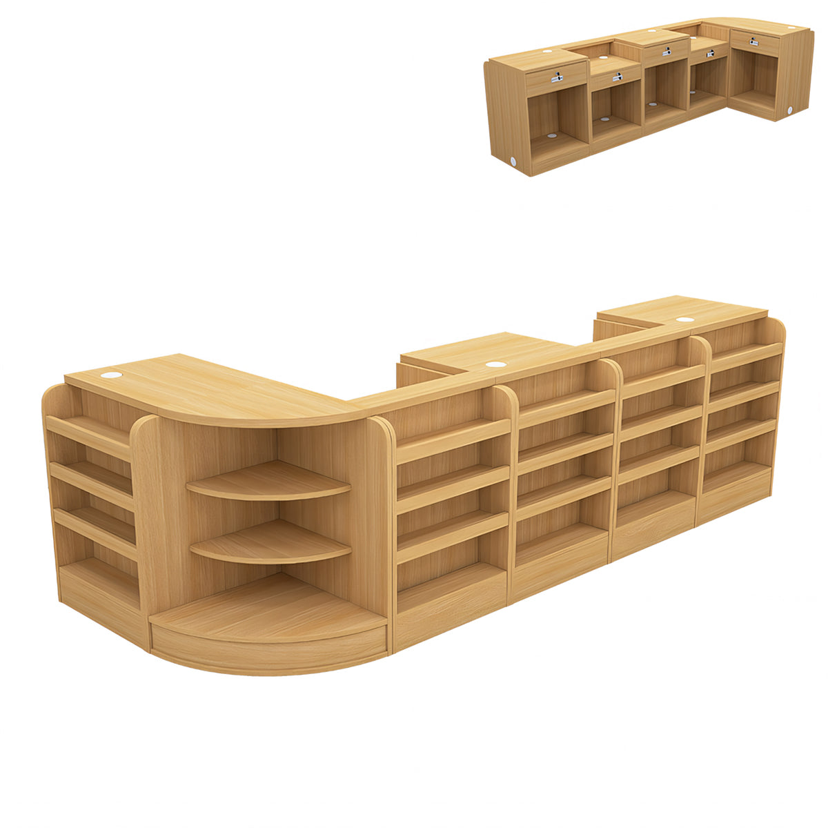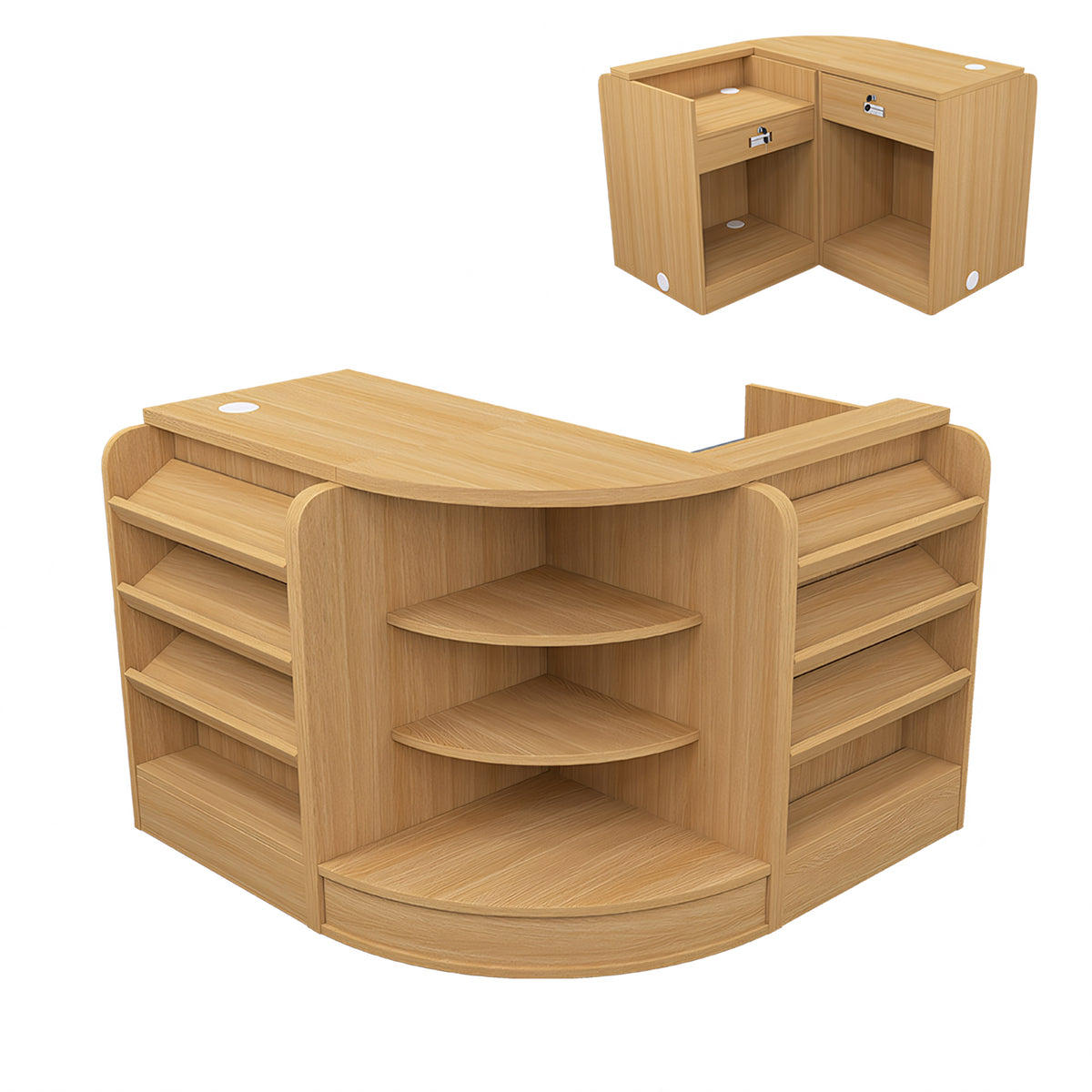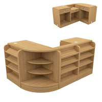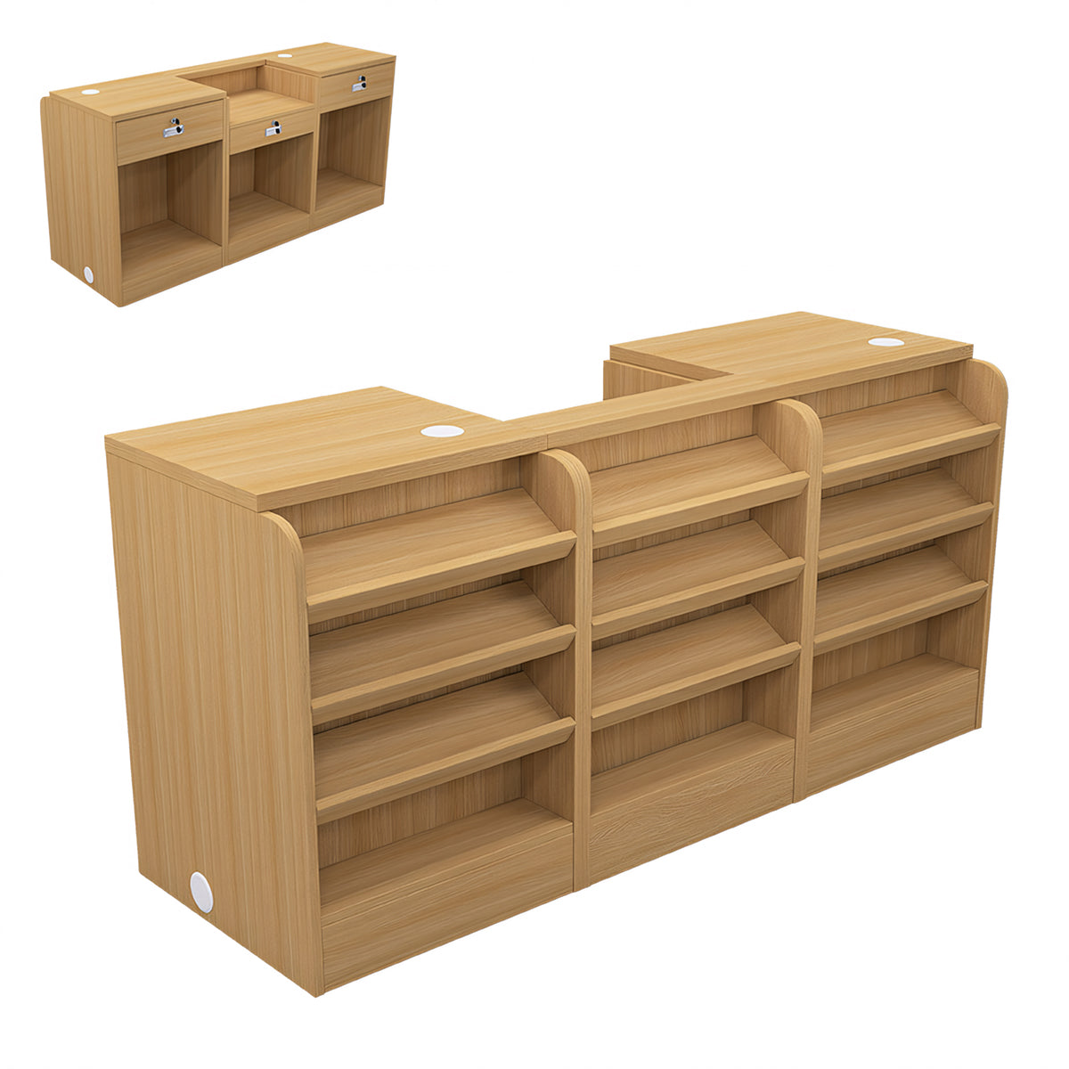 This checkout counter can be combined with a tobacco and alcohol cabinet. With corner makes the entire counter area present a smooth sense of lines, and the multi-layer shelves can easily display and store items.