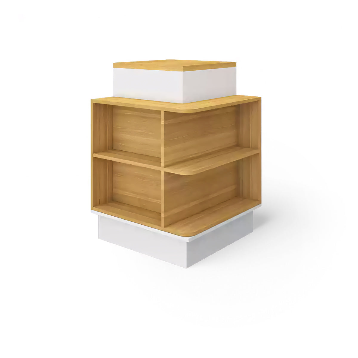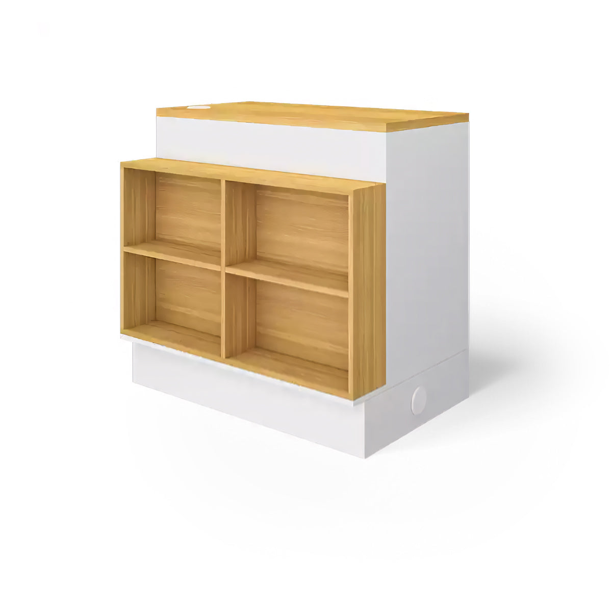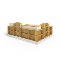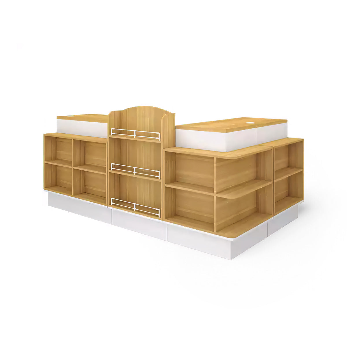 The front of the checkout counter features large partitions for items of various sizes. The corners are also used as storage space to increase the exposure of the goods. The selected boards are high-quality, high-density materials, which are eco-friendly and healthy.