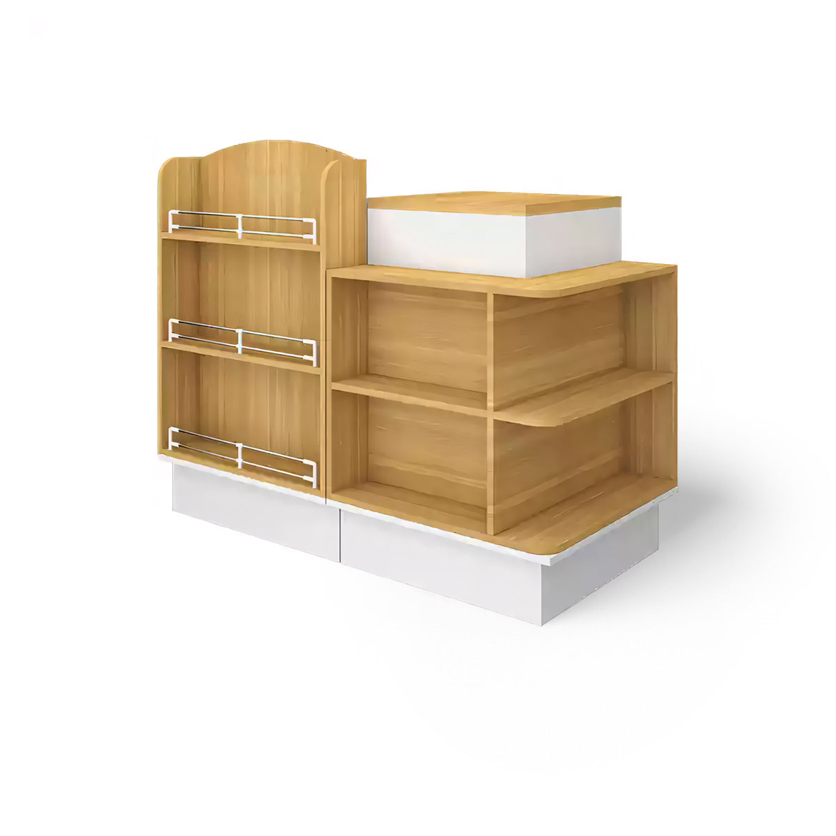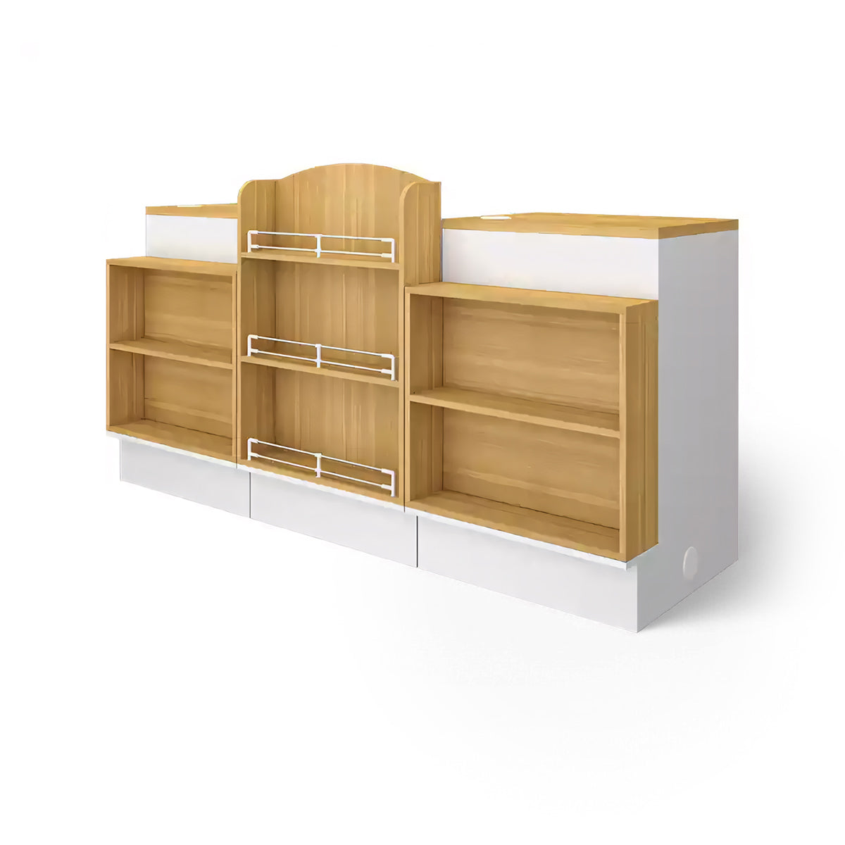 The multifunctional checkout counter is practical and beautiful. The stepped design enhances its storage function, allowing for the storage of more goods. The wide countertop makes it convenient for you to work.