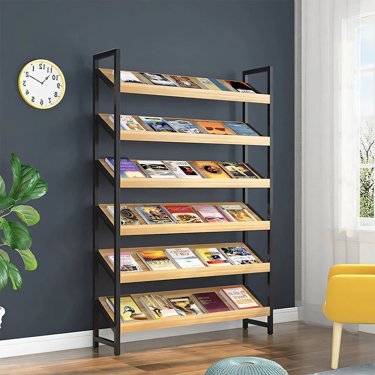 This wooden magazine rack is perfect for homes or commercial spaces.Simple design provides ample storage.Crafted from high-quality wood,it's durable and stable.Suitable for living rooms,offices,study rooms,adding cultural ambiance.