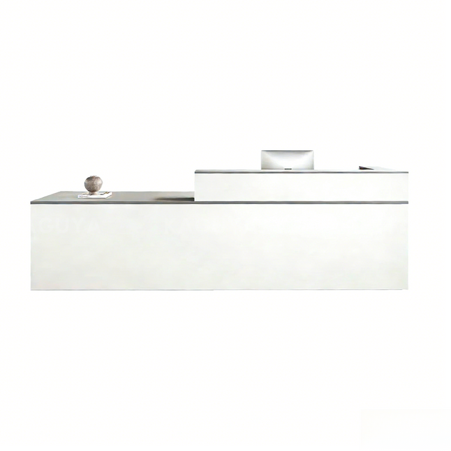 This modern, minimalist reception counter features a creamy design, perfect for small clothing stores, salons, and beauty shops. Its sleek, compact style adds elegance and functionality to any space, creating...