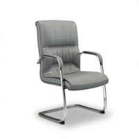 This chair features black leather and a polished chrome bow-frame base. Its sleek, minimalist design makes it ideal for offices, meeting rooms and other professional spaces.