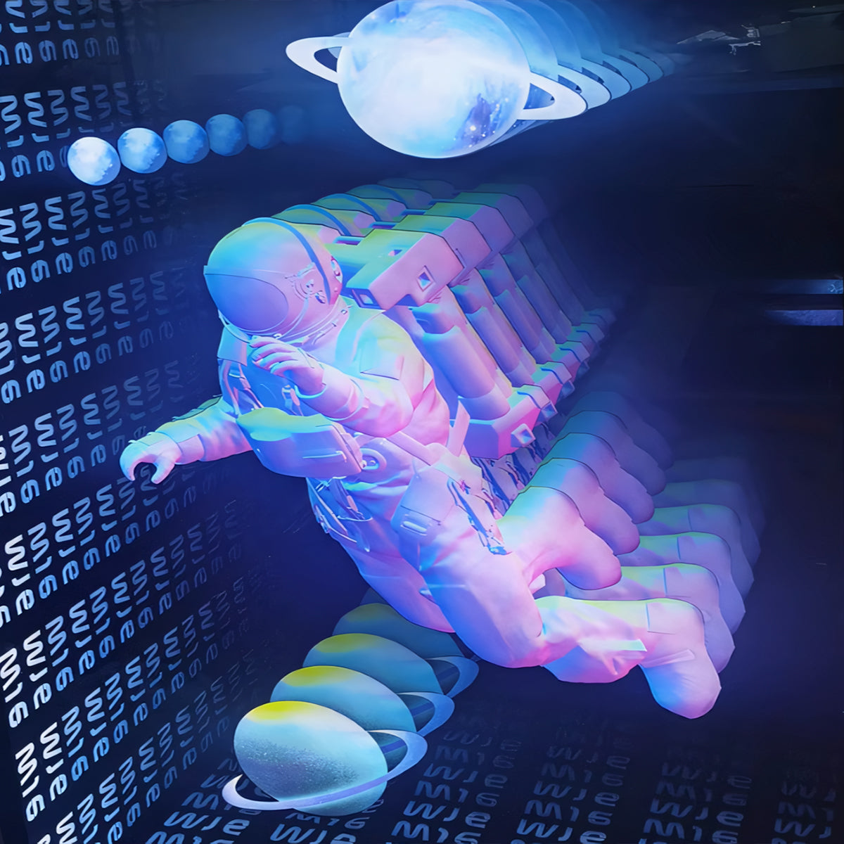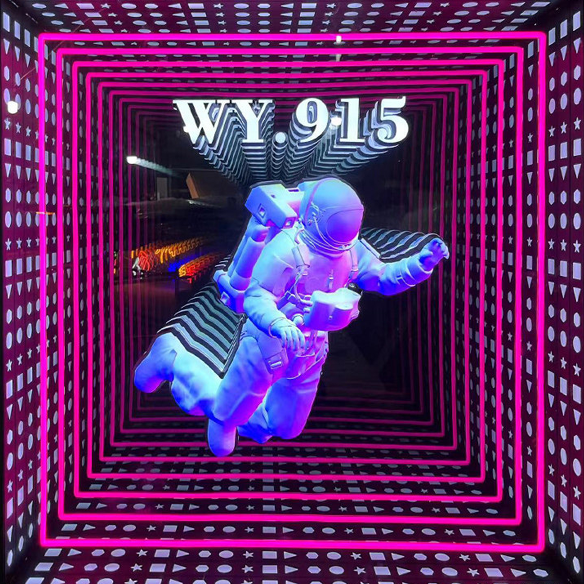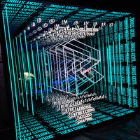 It consists of mirrors and light strips, utilizing the reflection of light between the mirrors to create a deep effect. There is a strong sense of three-dimensionality, so that the space seems to have infinite depth.