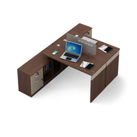 | Dear office furniture lovers, this single & double chair-combo computer desk with cabinet is great. With a simple design, it suits multiple office scenes. The sturdy material allows for both single focus and double collaboration. The cabinet is handy for storing office supplies. | |