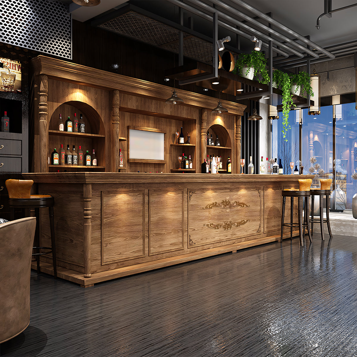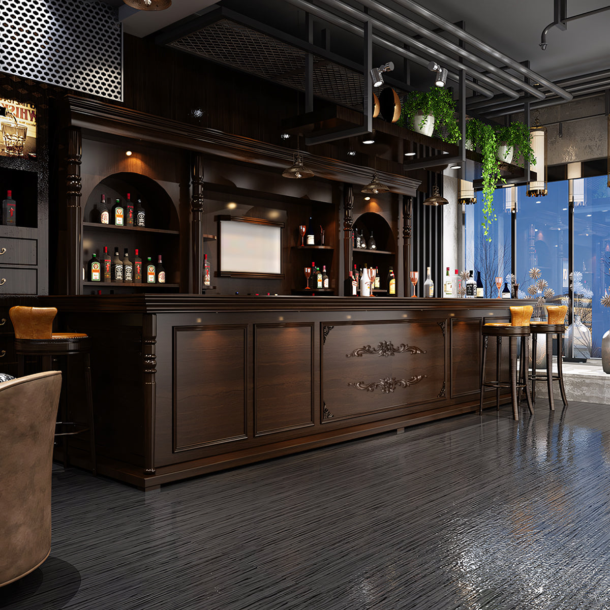 | The European-style retro corner curved bar counter is like a work of art, adding charm and elegance to your commercial space. Its ingenious design with smooth curved lines makes good use of space and creates a warm and comfortable atmosphere. It's widely applicable to bars, coffee shops, restaurants, etc. With a combination of exquisite appearance and practical functions, its delicate carvings and retro colors show European romance and luxury. Choose it to bring more attraction and success to your business. | |
