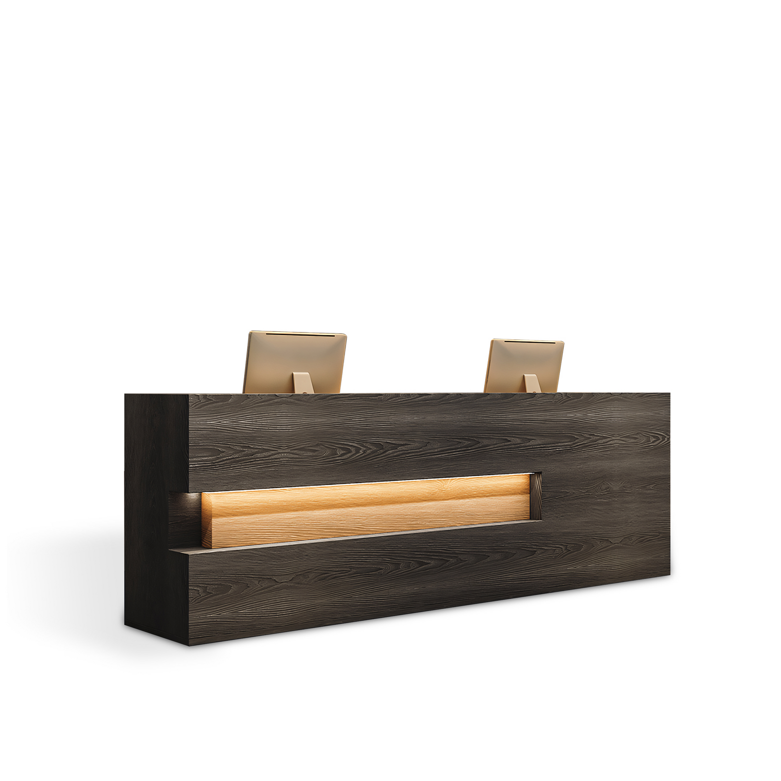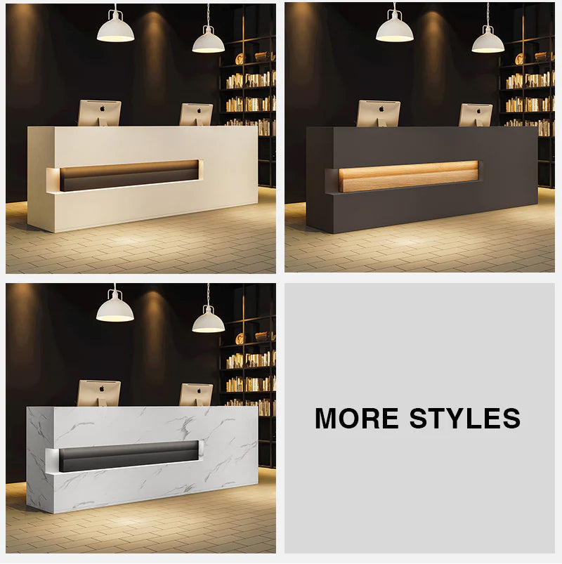 | This custom vintage solid wood reception desk features a fully assembled process and a unique wood grain pattern, blending fashion with classic design. Whether for an office, hotel front desk, music store, or clothing store, it fits in. Available in multiple colors, it instantly adds personality and style to your space. The exquisite craftsmanship, combined with beautifully textured high-quality solid wood materials, showcases high-end quality and charming appeal. | |