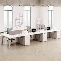 Description:Experience sophistication and functionality with our exquisite office desk and chair set tailored for dedicated 6-person workstations. This ensemble embodies simple modernity with an exquisite touch, perfect for collaborative work settings. Crafted with meticulous attention to detail, each workstation offers ample space for tasks, paired with ergonomic chairs ensuring comfort during extended work hours. The sleek design exudes elegance, enhancing the office aesthetics while optimizing functionality. Elevate your team's productivity with this exquisite desk and chair set, where style meets efficiency, fostering a collaborative and refined workspace. |